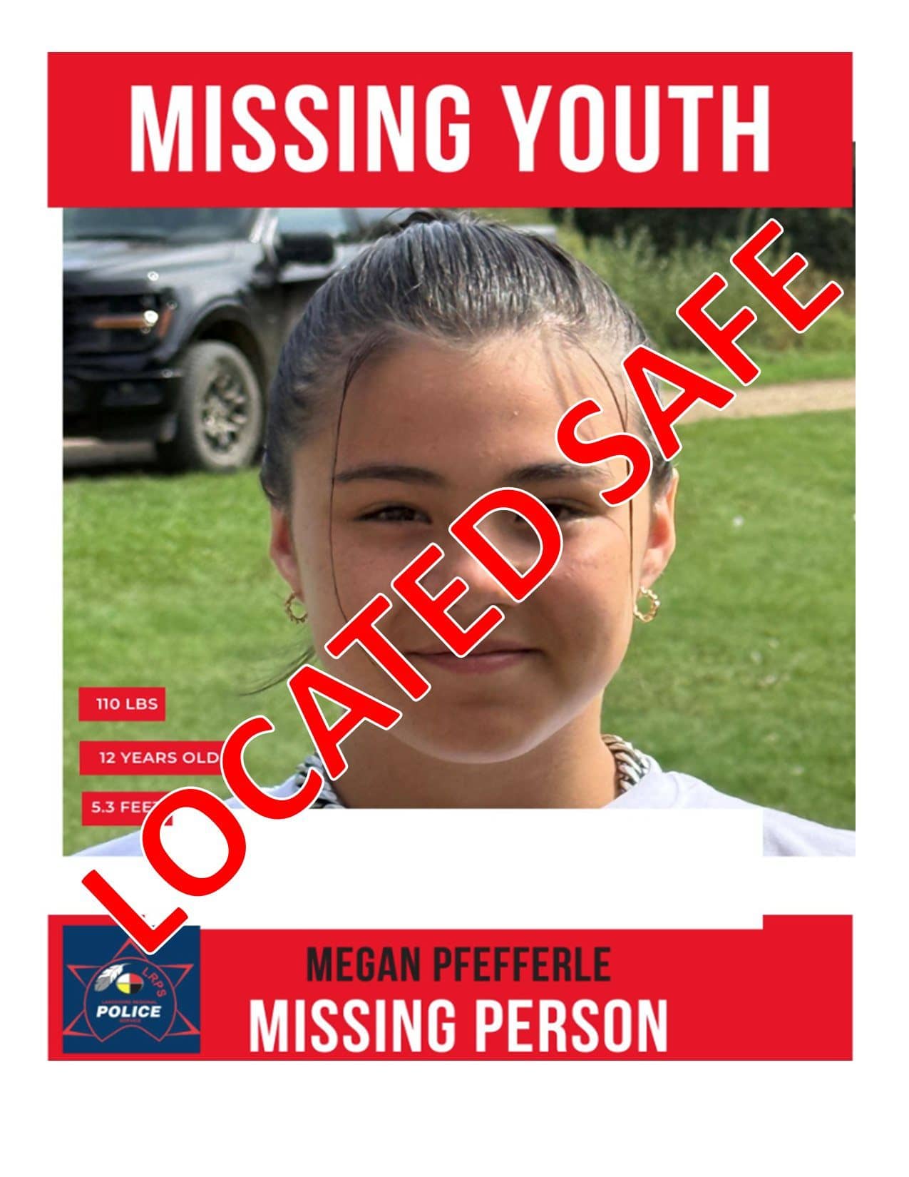Lakeshore Regional Police service are reporting that 12 year-old Megan Pfefferle has been located safe.