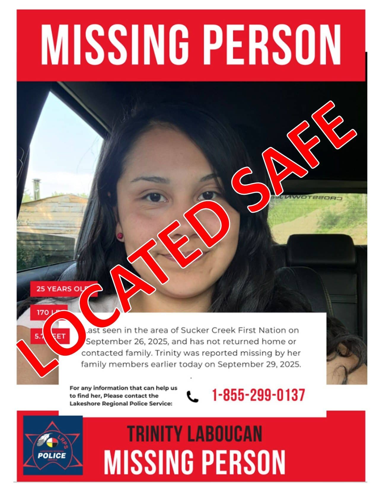 As well, 25 year-old Trinity Laboucan has been reported to be found safe.