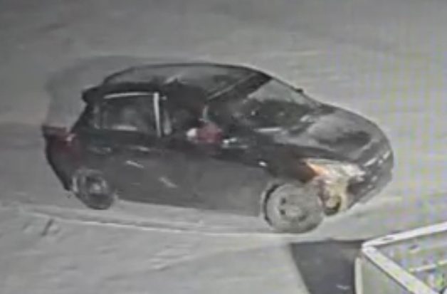 Survey footage shows a black or dark grey small hatchback, missing its front bumper, entering the site.