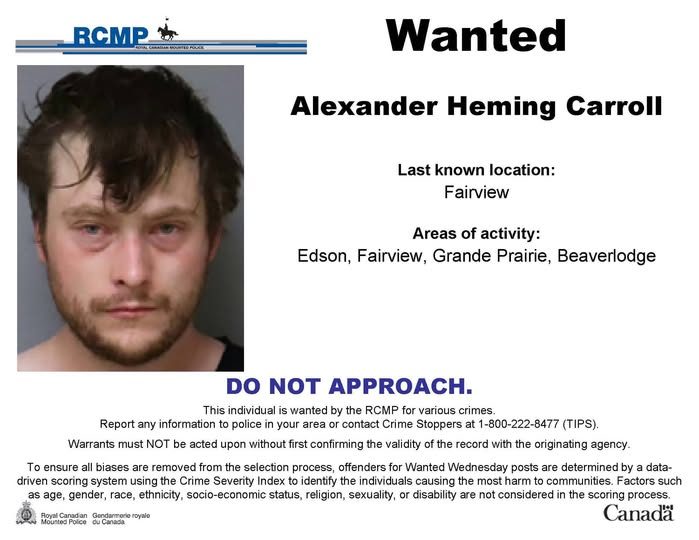 From the RCMP’s Weekly Wanted File, police are looking for Alexander Heming Carroll.