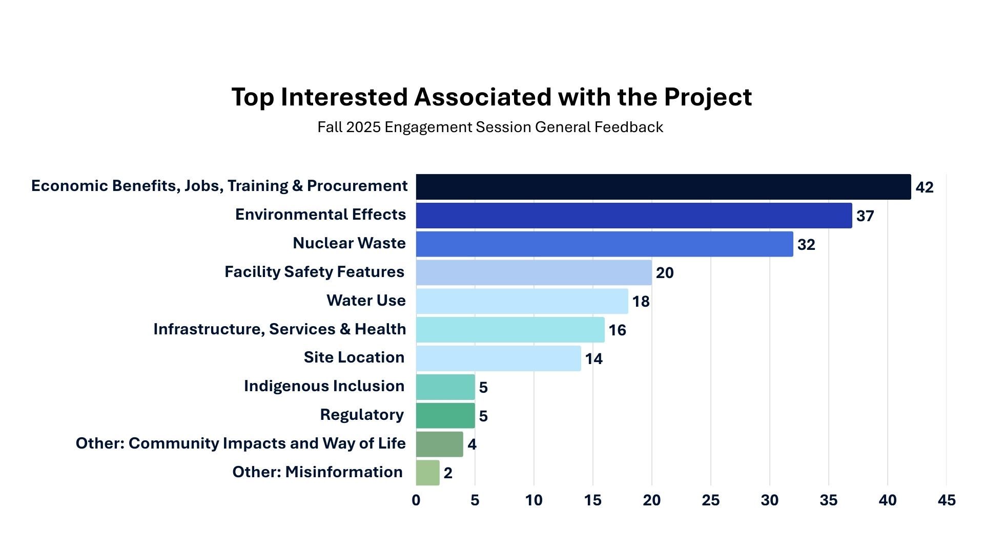 Each meeting included presentations from subject matter experts covering nuclear safety and fundamentals, site selection, community impacts, environmental effects, and jobs, procurement and training opportunities. Presentations were followed by open discussions and question-and-answer periods. Participants were also invited to provide written comments through discussion boards, allowing multiple ways to take part in the conversation.